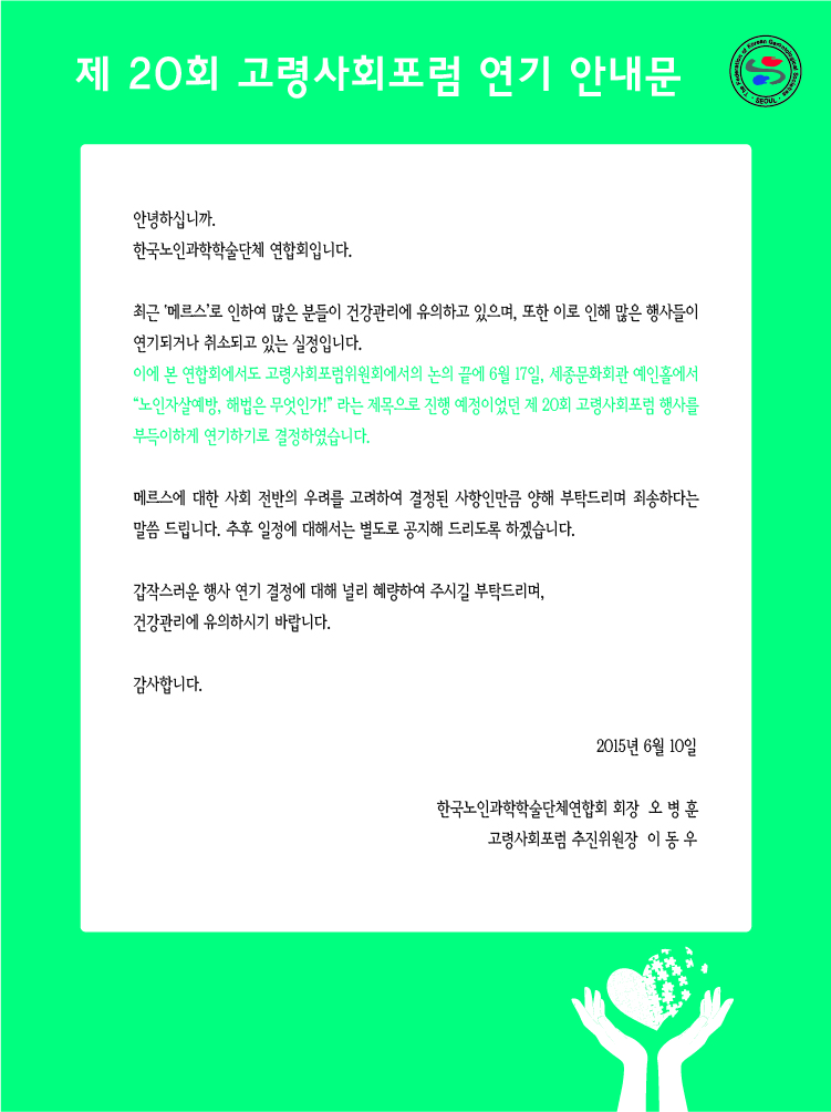 [연기] 제20회 고령사회포럼 연기안내 (2015-06-10)
