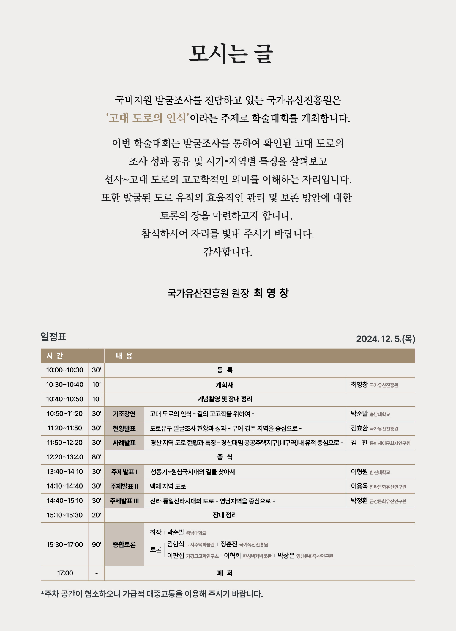 [국가유산진흥원] '고대 도로의 인식' 학술대회 개최 안내(12/5)