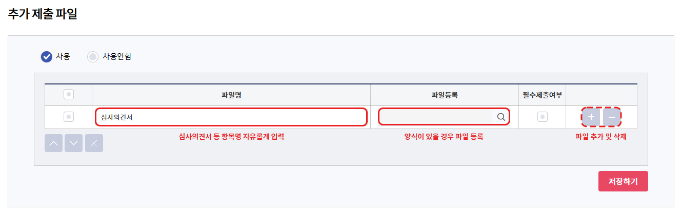 심사의견서와 같이 심사위원이 제출해야 할 파일은 추가 제출 파일 기능을 활용합니다.