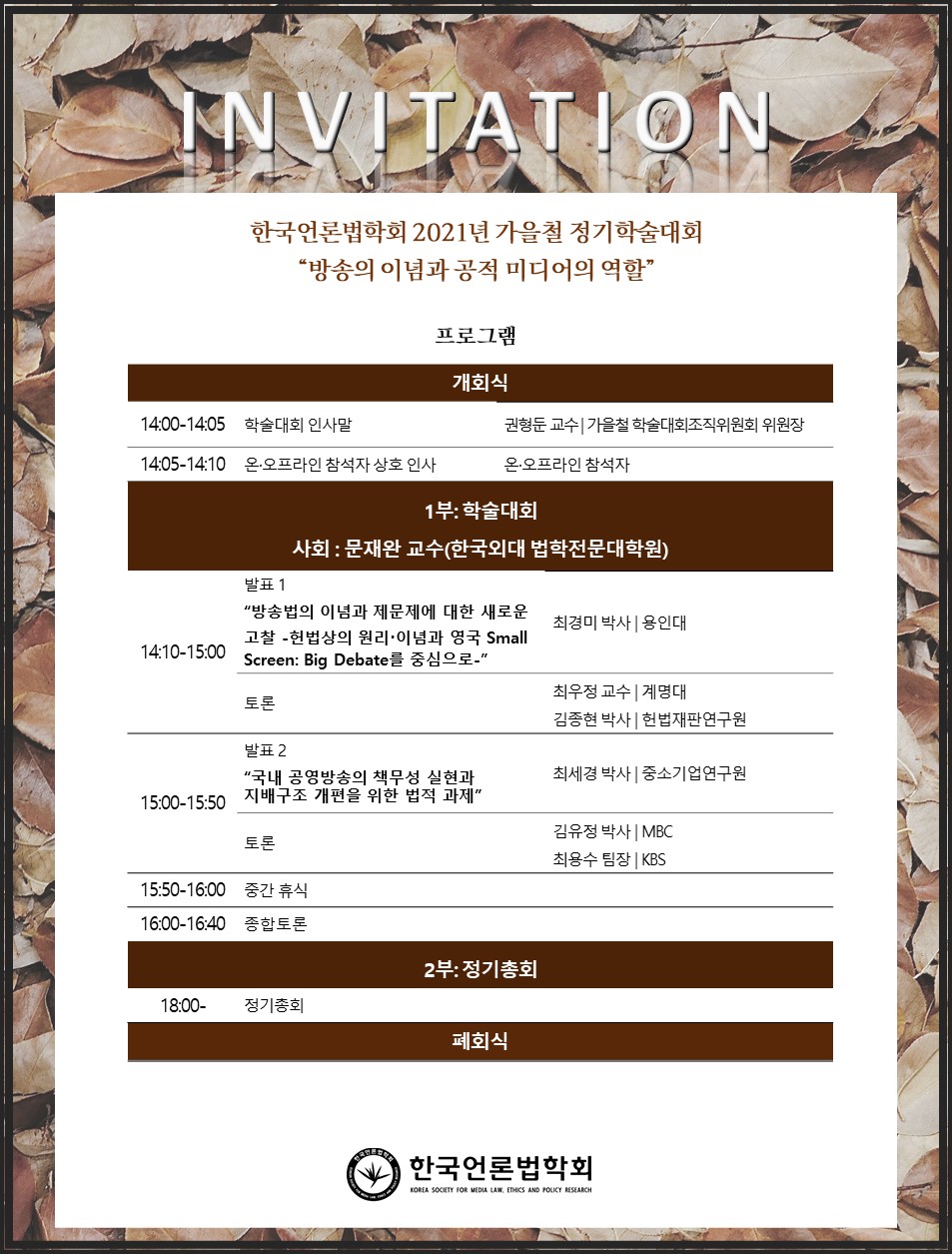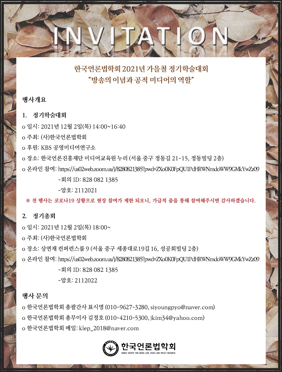 [공지] 한국언론법학회 2021 가을철 학술대회 및 정기총회 개최