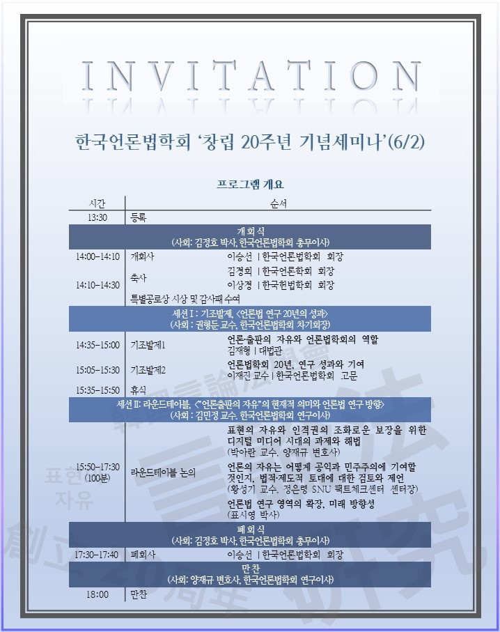 [공지] 한국언론법학회 창립 20주년 기념세미나 개최