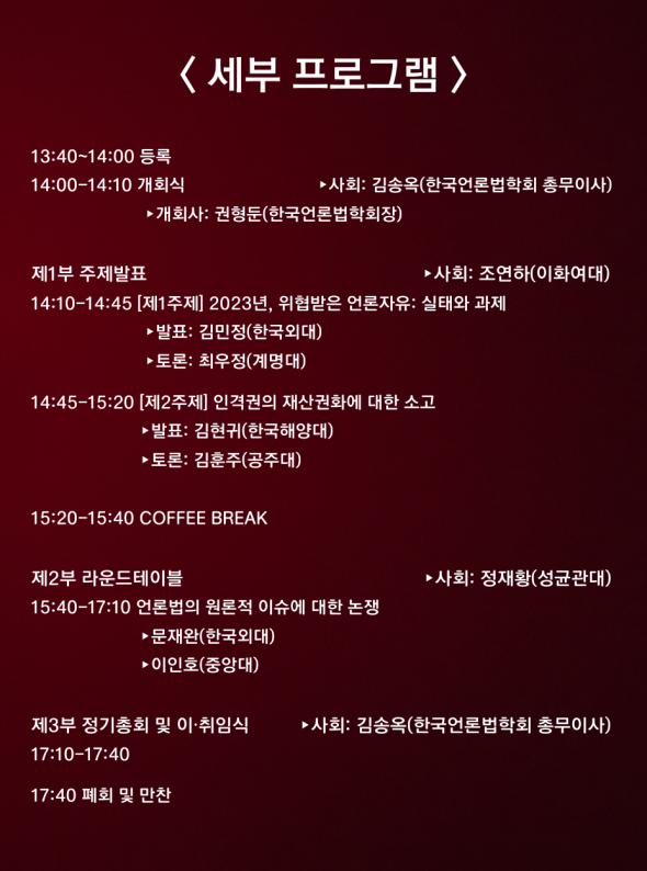 [공지] 한국언론법학회 2023 가을철 정기학술대회 개최