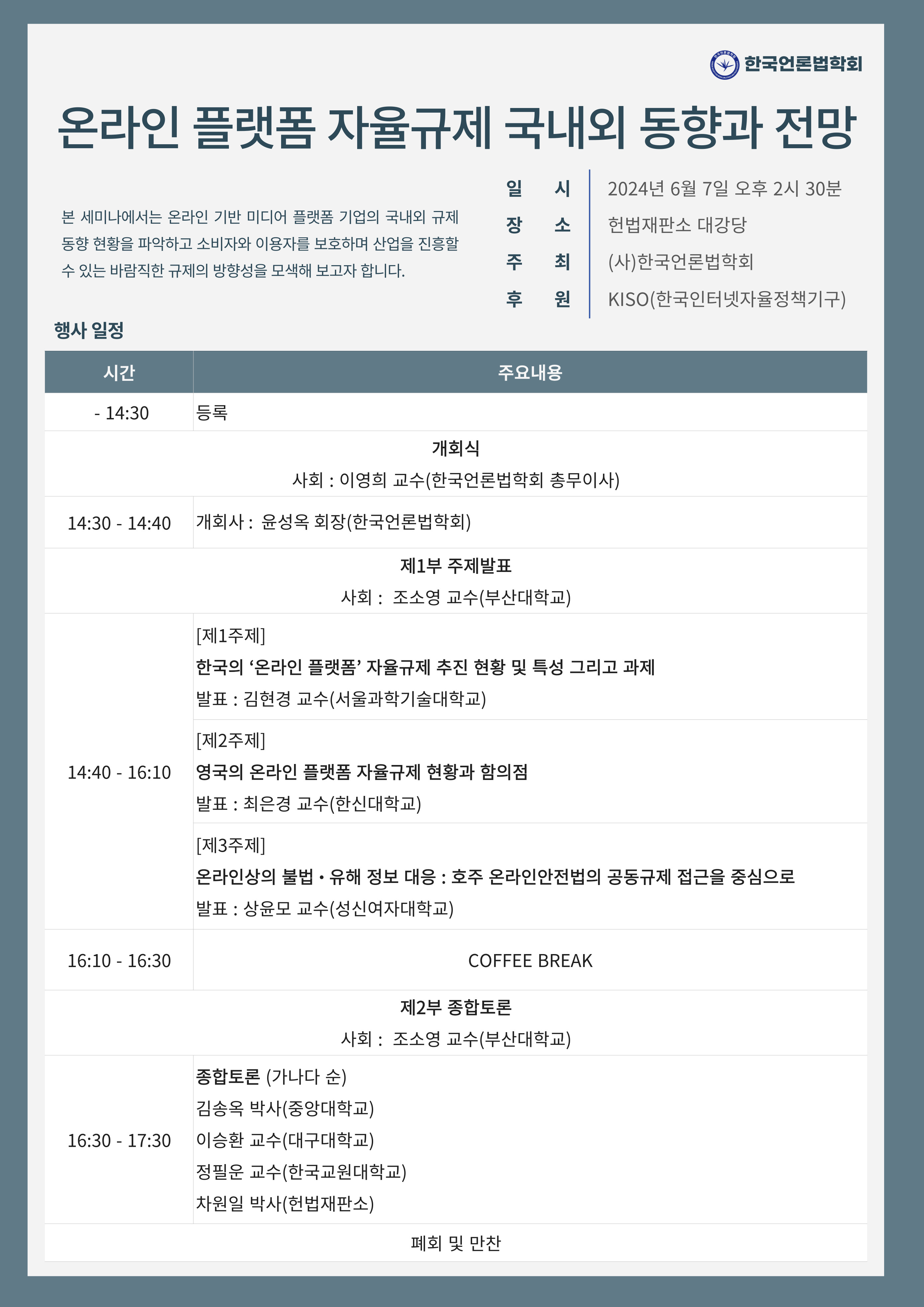 2. 한국언론법학회에서 2024 학술세미나 개최를 합니다. 학회원 여러분의 많은 관심과 참여를  부탁드립니다.