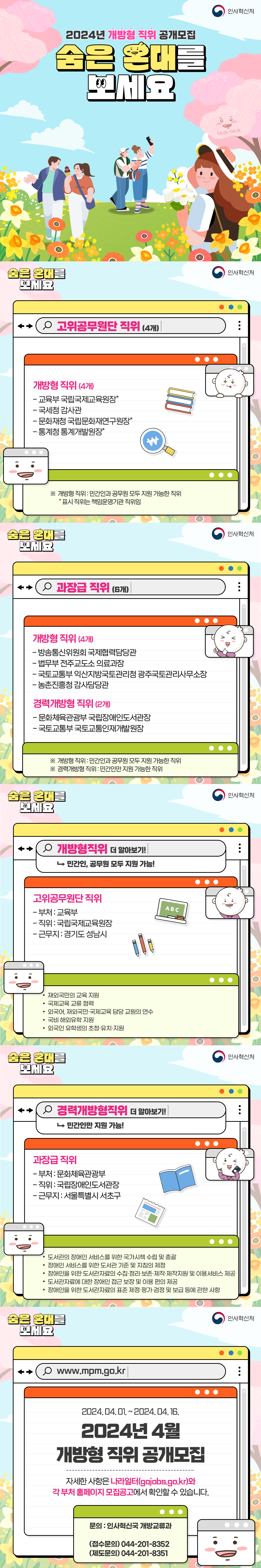 [인사혁신처] 2024년4월 고공단 및 과장급 개방형 직위 선발 안내