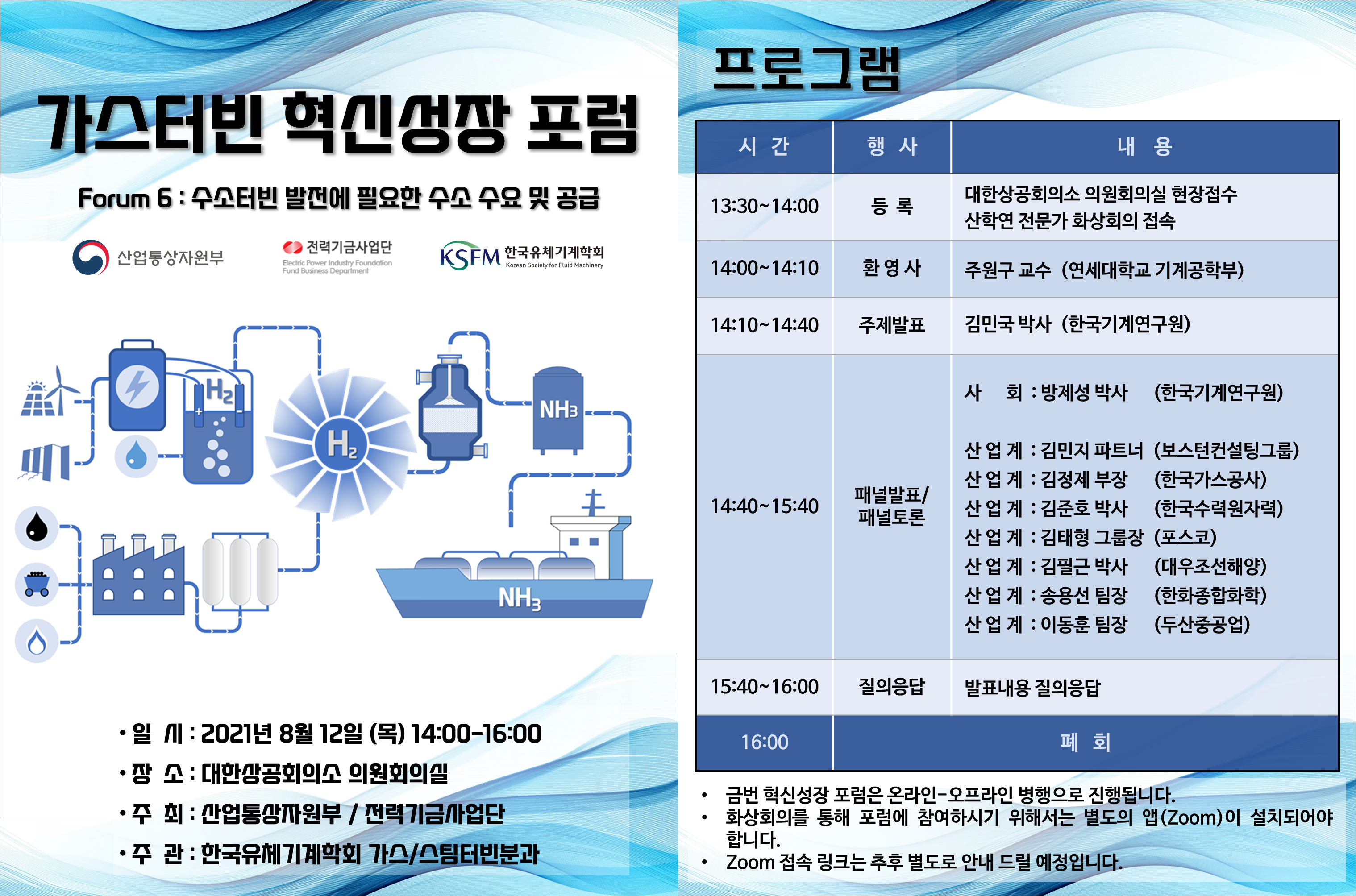 당 학회의 가스/스팀터빈분과에서 주관하는 사업인 ‘가스터빈 혁신성장 포럼’ 행사에 대해 안내 드립니다.