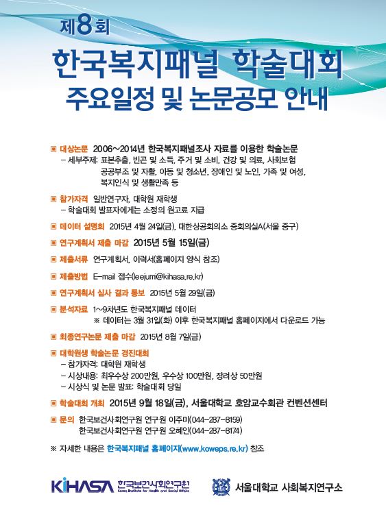 [기타] 제8회 한국복지패널 학술대회 연구계획서 접수마감(5/12) (2015-04-21)