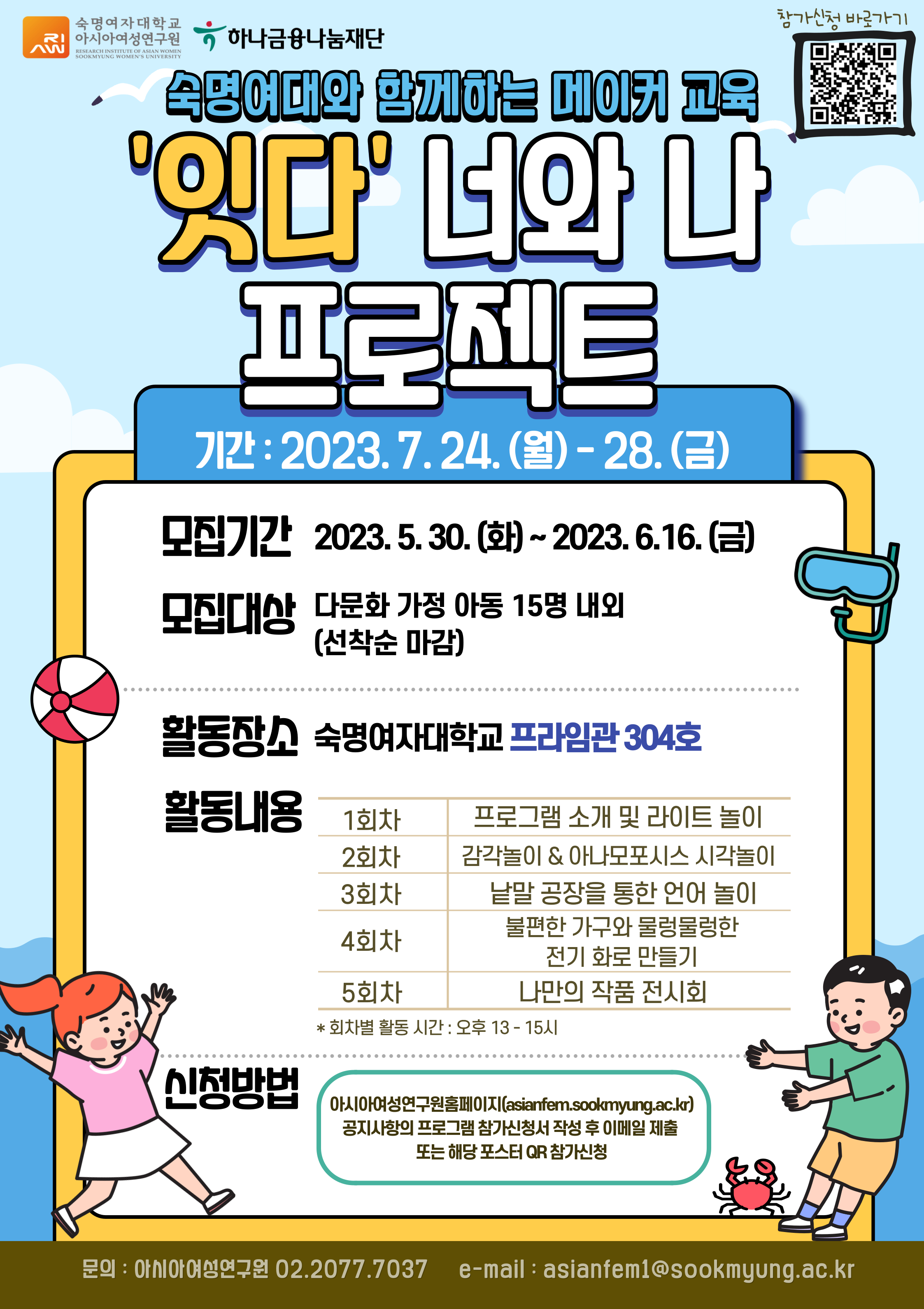 ✓ 모집 대상: 다문화 가정 아동 15명 내외 (선착순 마감)