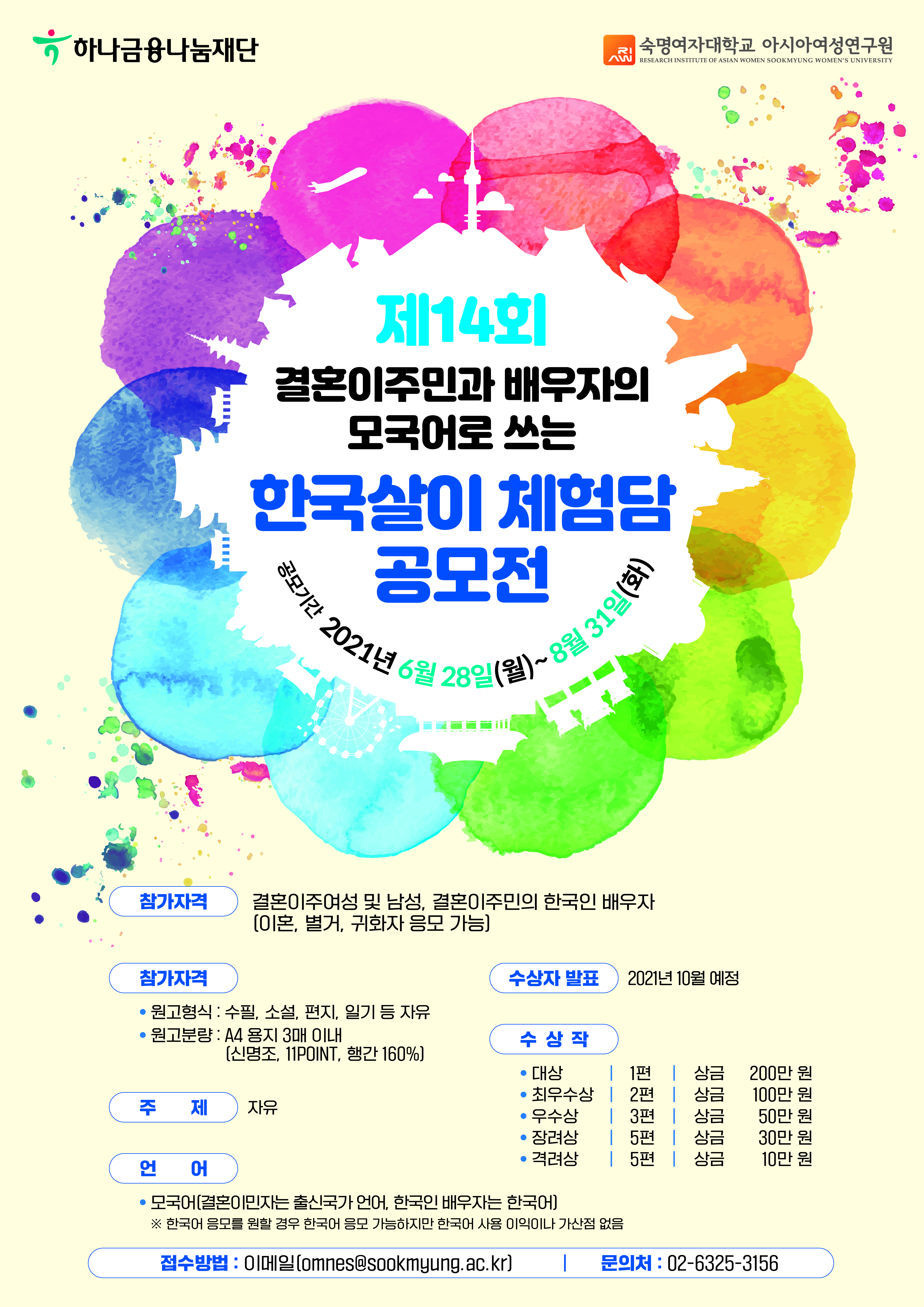 2. 응모자격 : 결혼이주여성 및 남성, 결혼이주민 한국인 배우자(이혼, 별거, 귀화자 응모 가능)