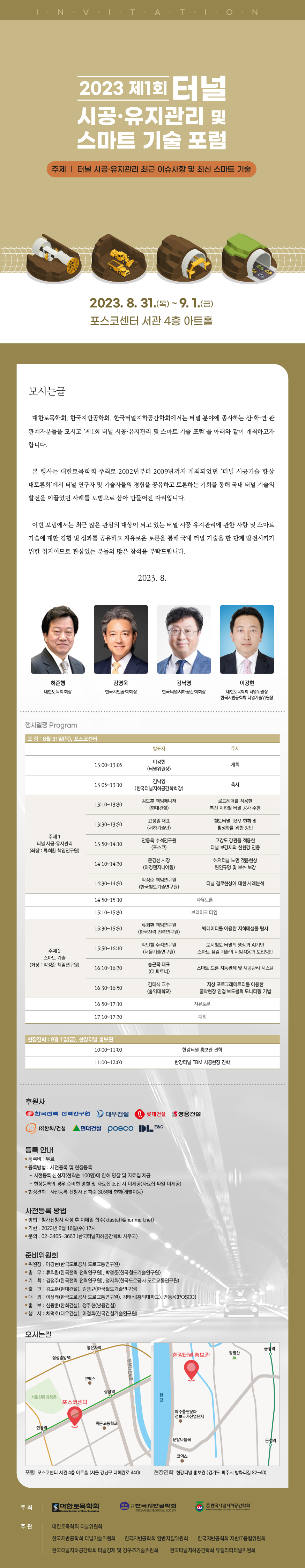 [한국지반공학회 터널기술위원회] <2023 제1회 터널 시공·유지관리 및 스마트 기술 포럼>_ 사전등록마감
