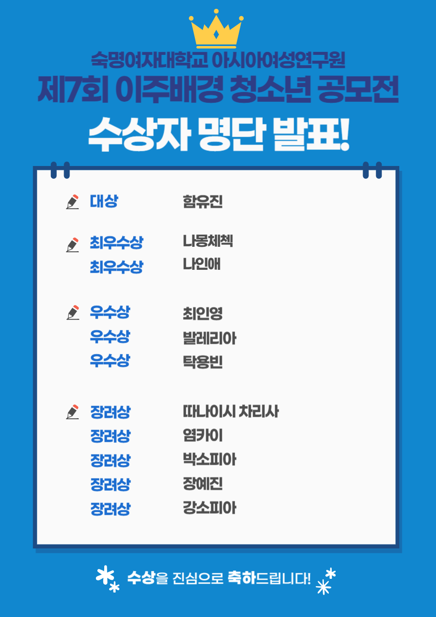2024년 제7회<이주배경청소년 온라인 백일장>최종수상자를 발표합니다.