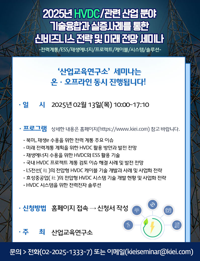 [산업교육연구소] 2025년 HVDC/관련 산업 분야 기술융합과 실증사례를 통한 신비즈니스 전략 및 미래 전망 세미나