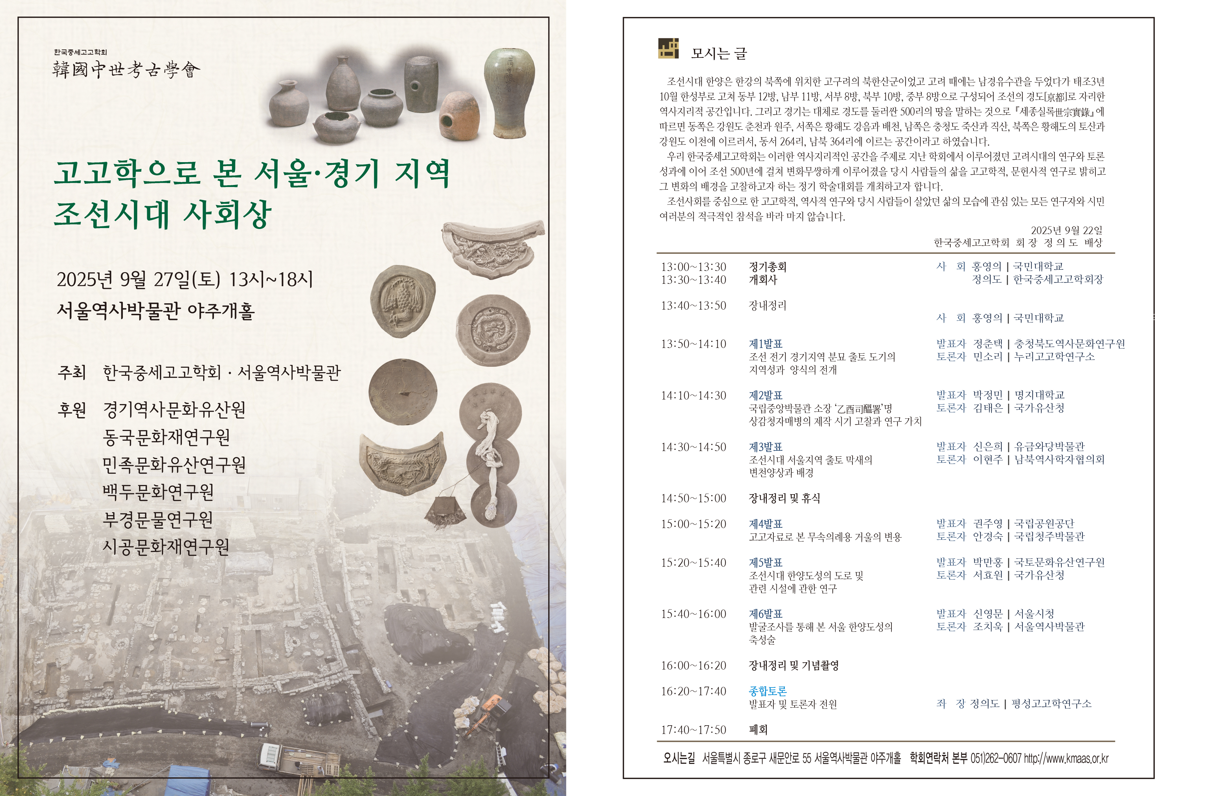 [2025년 한국중세고고학회 추계학술대회]고고학으로 본 서울 · 경기지역 조선시대 사회상