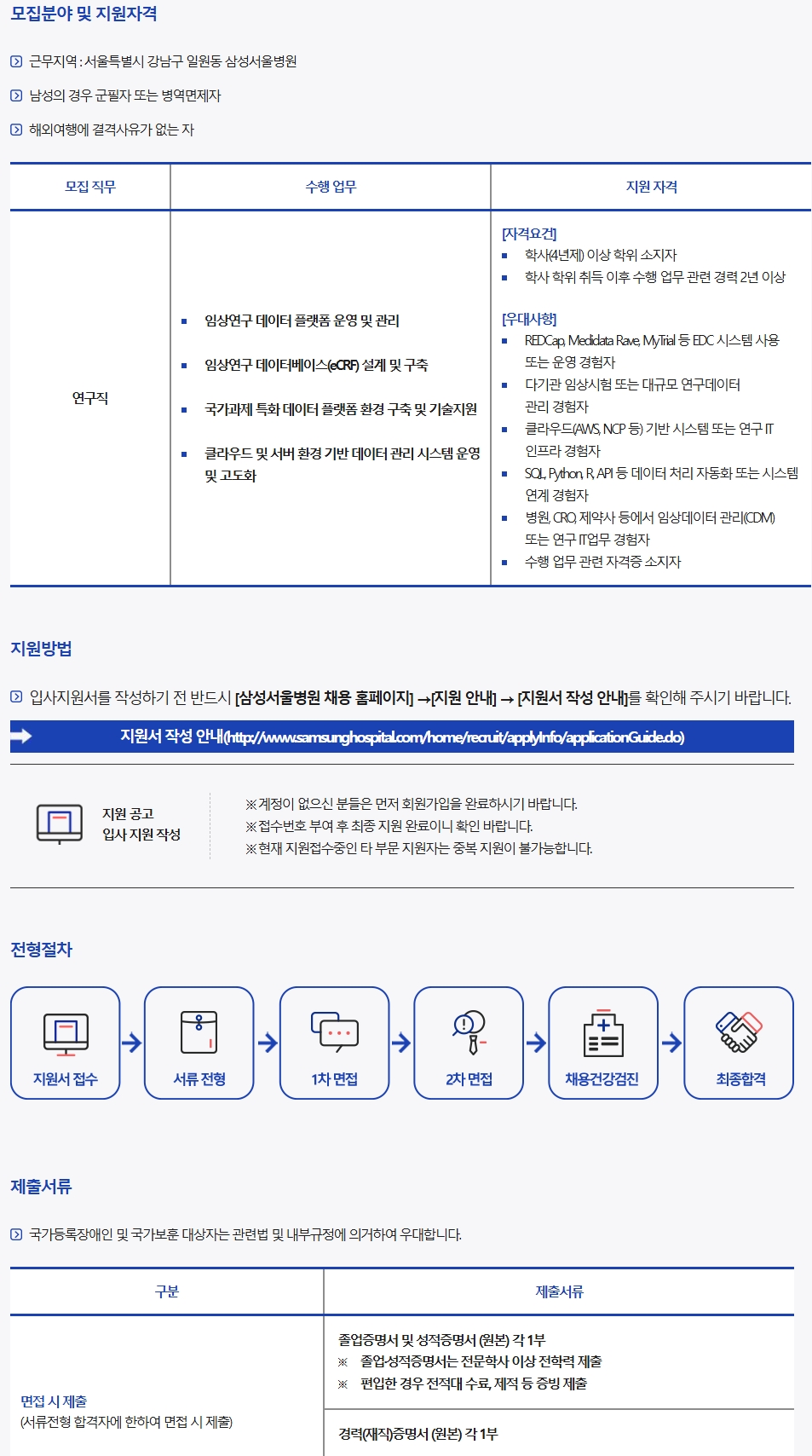 ▷ 근무지역 : 서울특별시 강남구 일원동 삼성서울병원 일원캠퍼스