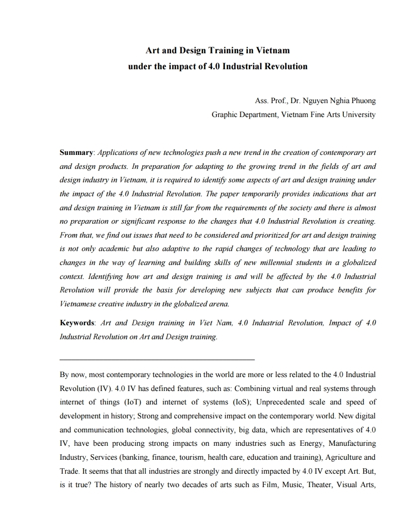 Art and Design Training in Vietnam under the impact of 4.0 Indu