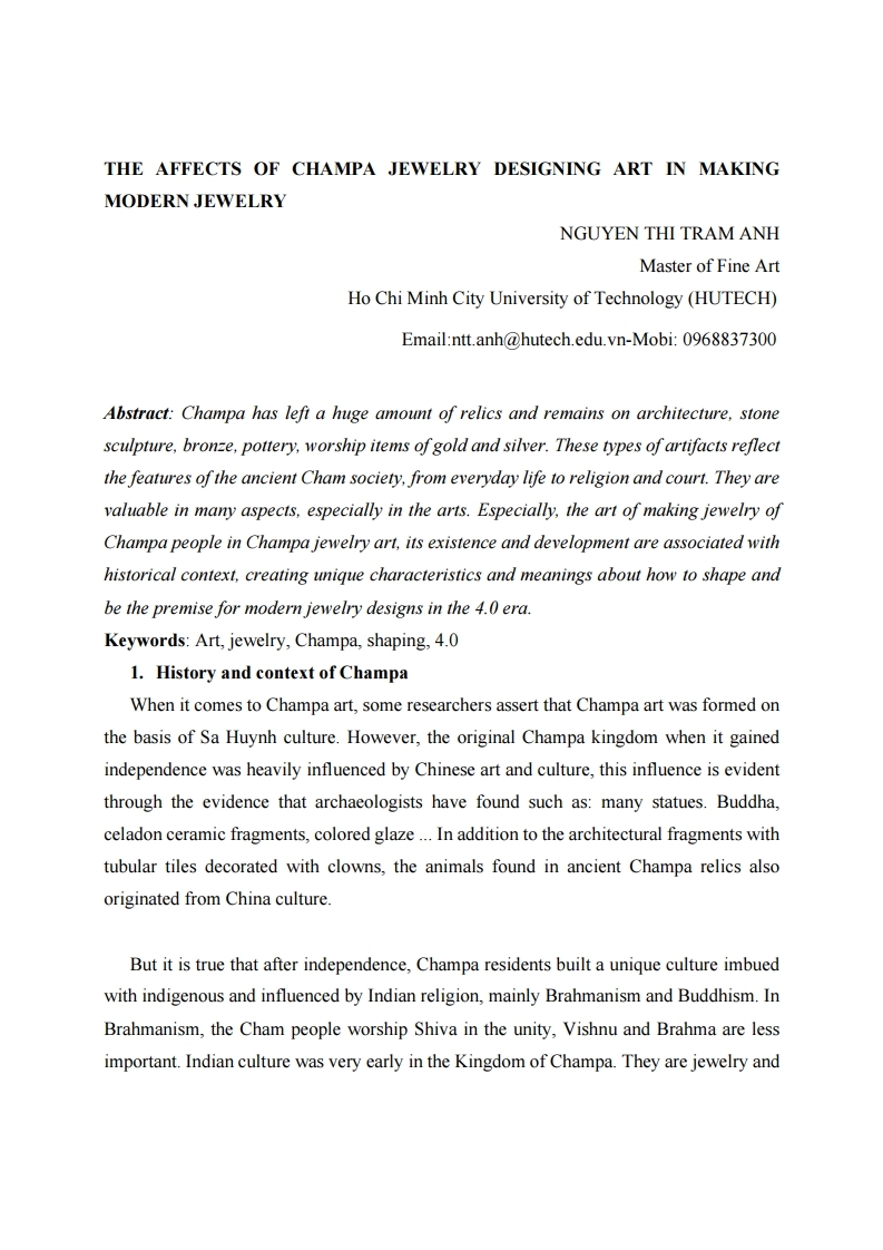 The affects of Champa jewelry designing art in making modern jew
