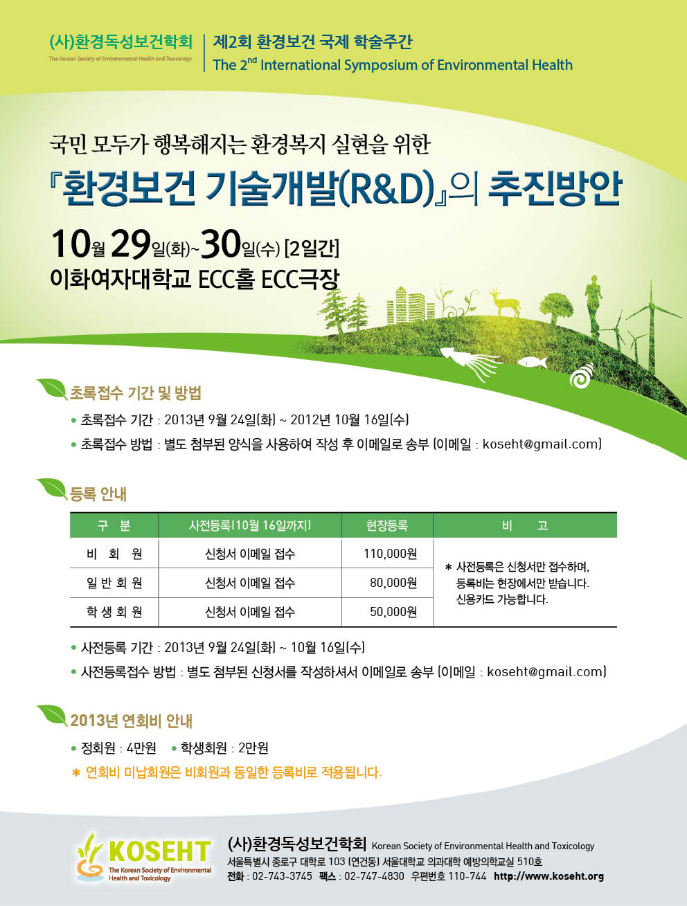 제2회 환경보건 국제 학술주간 초록접수 및 사전등록 안내